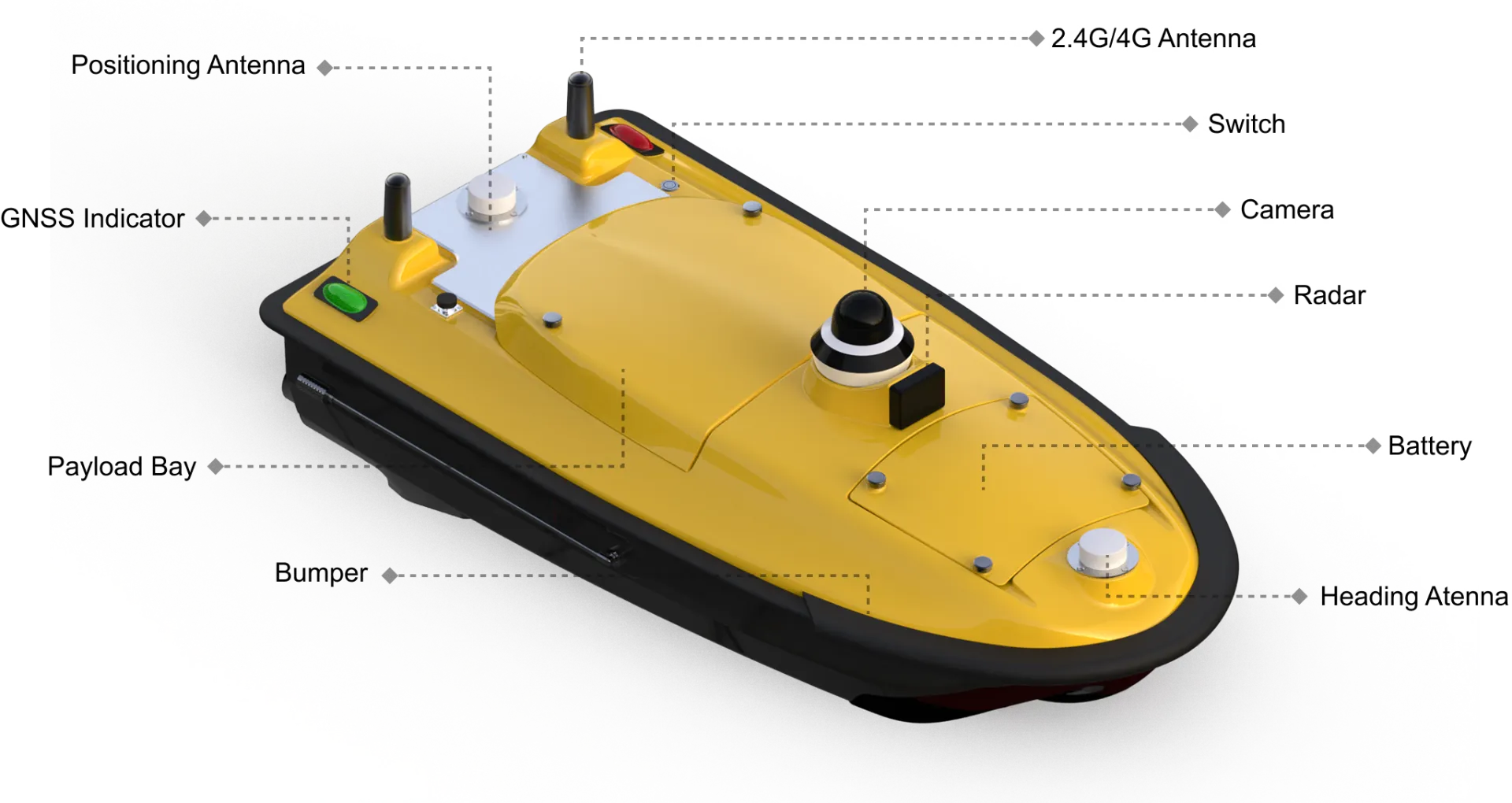 | Expandable Payload | Multi-beam echosounder, Acoustic Doppler Current Profiler(ADCP), Sub-bottom Profiler, Side-scan Sonar, Dual-frequency Single-beam echosounder, Multi-parameter Water Quality Meter, Water Quality Sampler, Total Phosphorus and Total Nitrogen (TP&TN) Analyzer, Gas Detector, Laser Radar, Optical Camera, (Open SDK to Extend and Customize) |